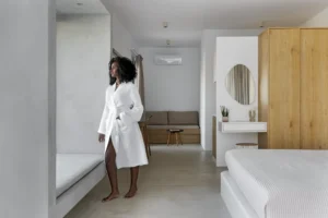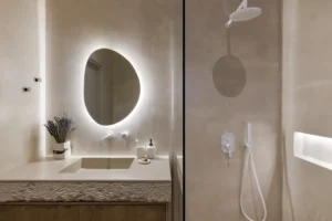 Inspired by the island’s raw palette of stone and sand, Elysian is both chic and grounding — a space that feels soft, warm, and quietly elegant.